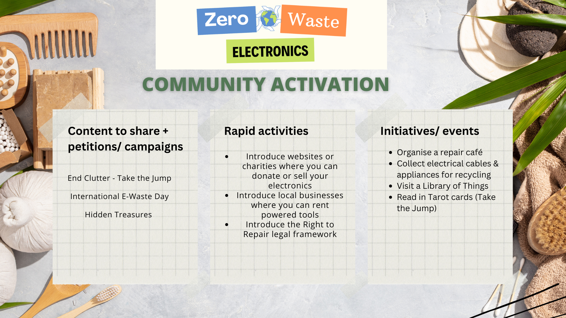 We’ve compiled some ideas to help get your community involved. An easy way to start is by sharing some of the campaigns we mentioned above! Inspire even greater change by collecting your community’s recyclable electronics or organising a repair event.