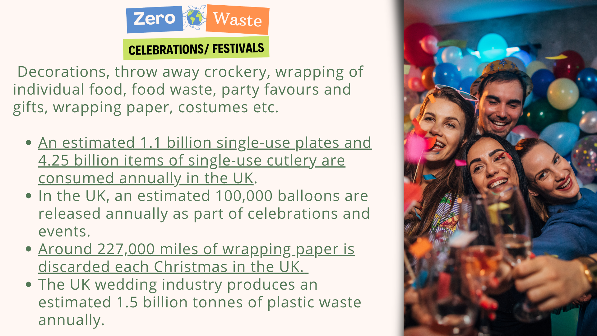 Celebrations don’t have to come at the environment’s expense. TAlthough reducing waste may require some extra effort, you’ll create celebrations that are more meaningful for both the people and the planet. Don’t hesitate to share our blog and the campaigns mentioned with those close to you to amplify the message!